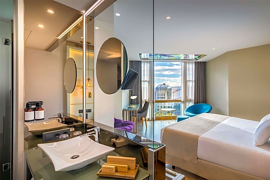 This double room's special features are the hot tub and the spa bath. Offering free toiletries and bathrobes, this double room includes a private bathroom with a shower and a hairdryer. The double room offers air conditioning, soundproof walls, a mini-bar, a tea and coffee maker and a flat-screen TV. The unit offers 1 bed.